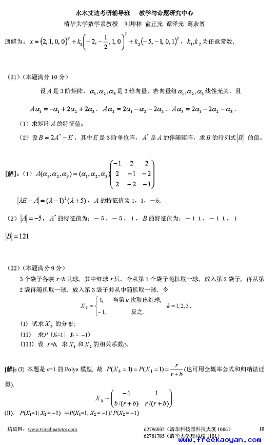 07年考研数学三模拟测试卷及答案解析(四)10