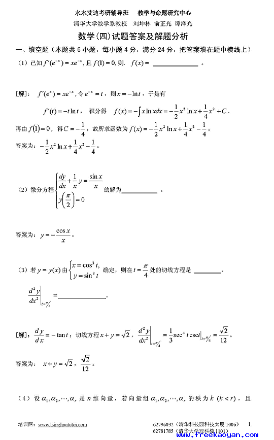 07年考研数学四模拟测试卷及答案解析(四)1