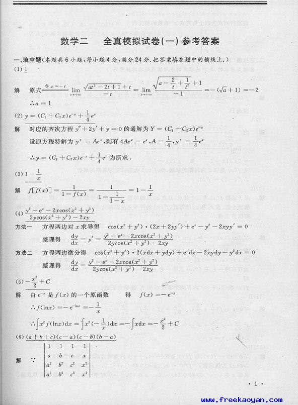 文都数学全真模拟试题及答案(数二)7