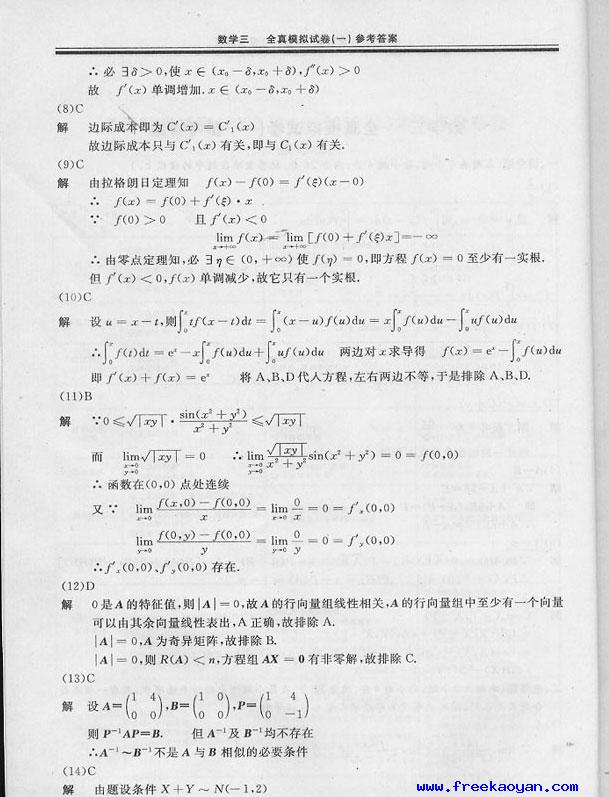 文都数学全真模拟试题及答案(数三)8