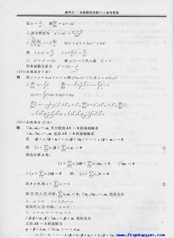 文都数学全真模拟试题及答案(数三)10