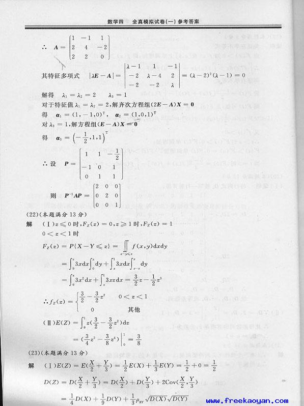 文都数学全真模拟试题及答案(数四)12