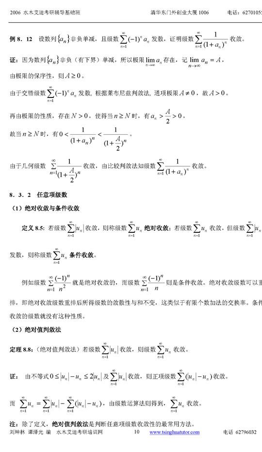 2006年水木艾迪考研基础辅导班数项级数讲义