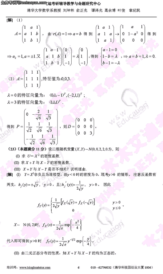 2007年考研考前能力自测试题及答案(数学四)(10)