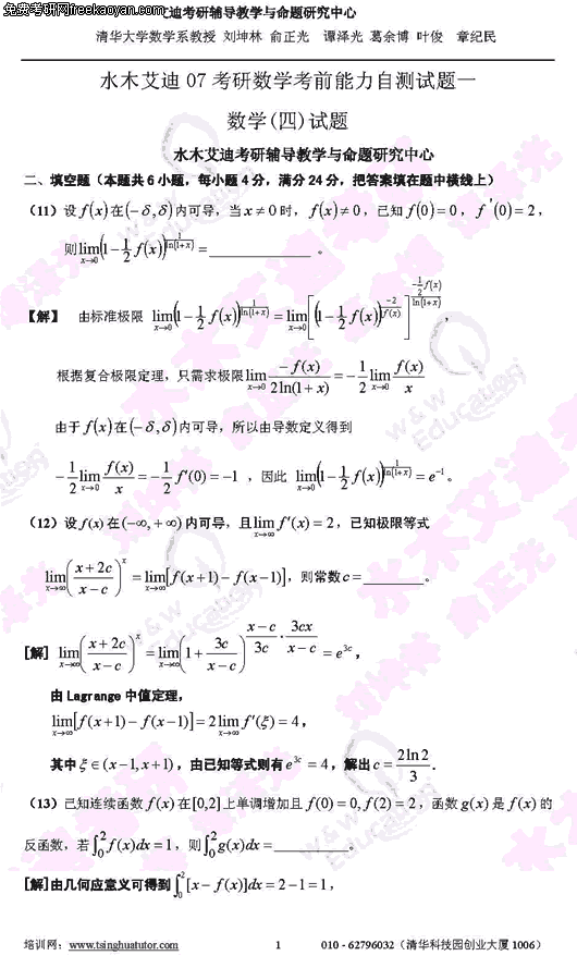 2007年考研考前能力自测试题及答案(数学四)(5)