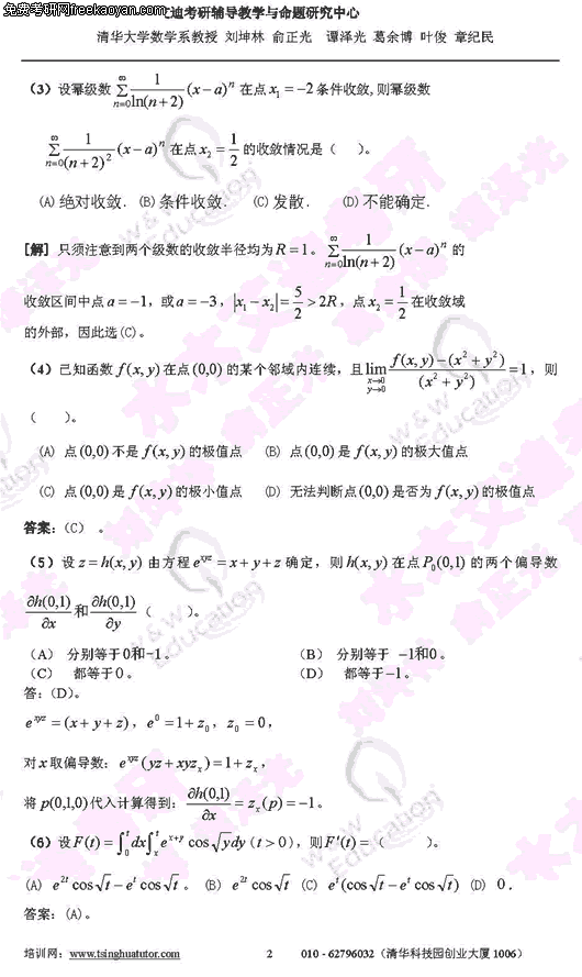 2007年考研考前能力自测试题及答案(数学三)(2)