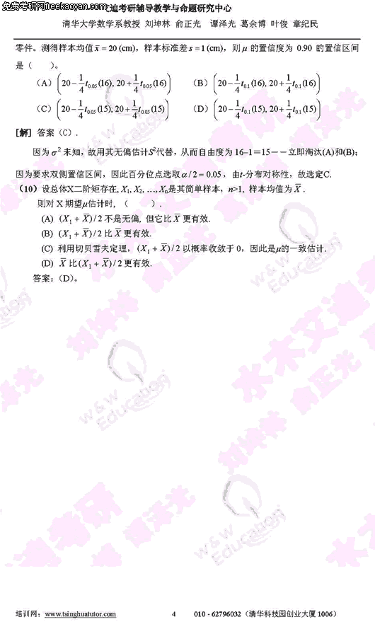 2007年考研考前能力自测试题及答案(数学三)(4)