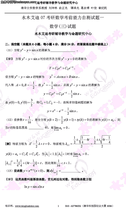 2007年考研考前能力自测试题及答案(数学三)(5)