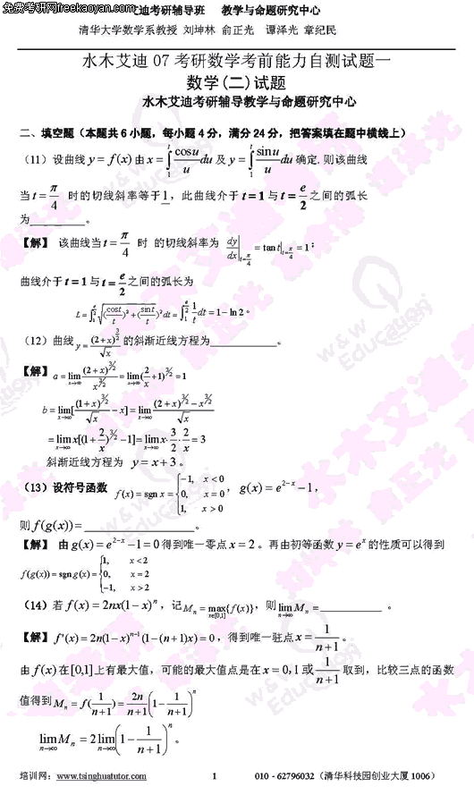 2007年考研考前能力自测试题及答案(数学二)(2)