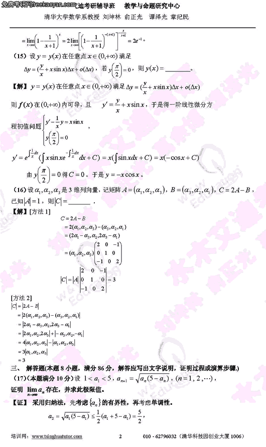 2007年考研考前能力自测试题及答案(数学二)(3)