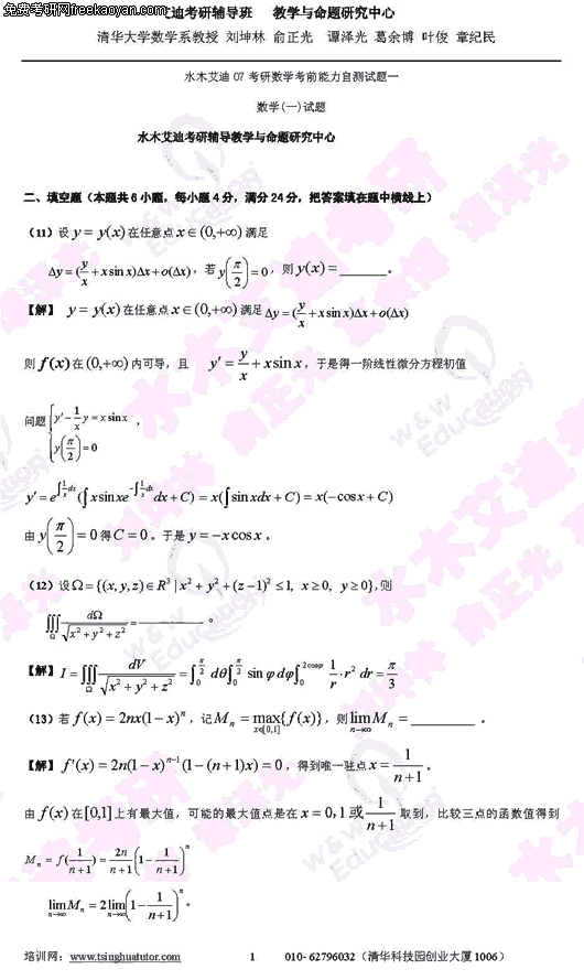 2007年考研考前能力自测试题及答案(数学一)(4)