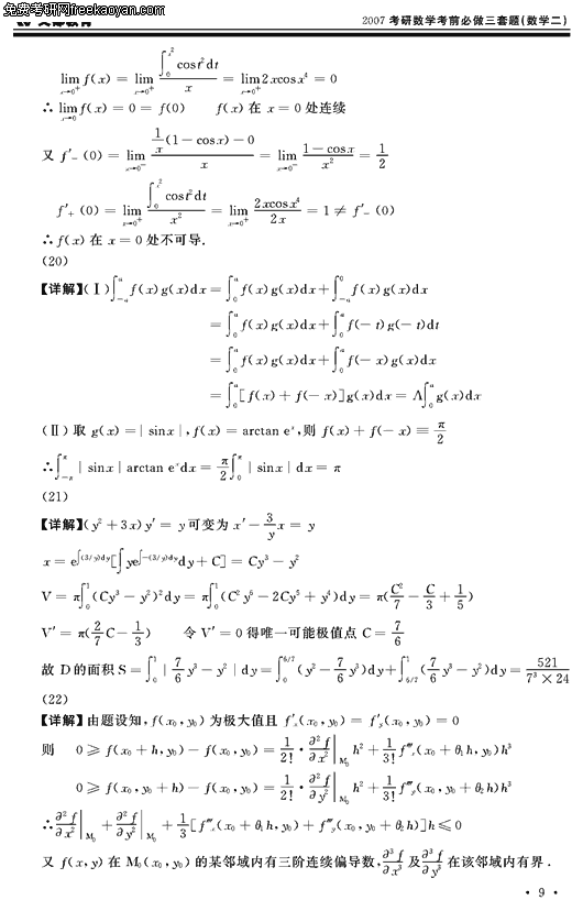 2007考研数学考前必做三套题(数学二试卷一)(8)