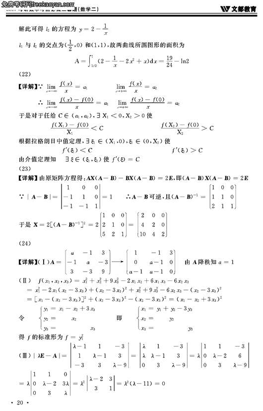 2007考研数学考前必做三套题(数学二试卷二)(10)