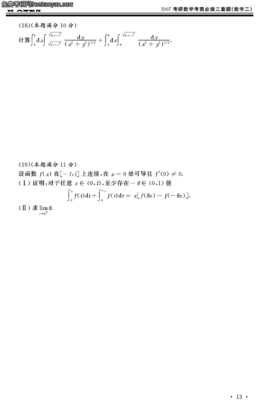 2007考研数学考前必做三套题(数学二试卷二)(3)