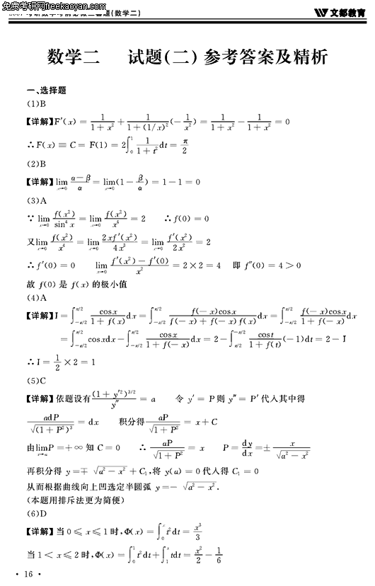 2007考研数学考前必做三套题(数学二试卷二)(6)