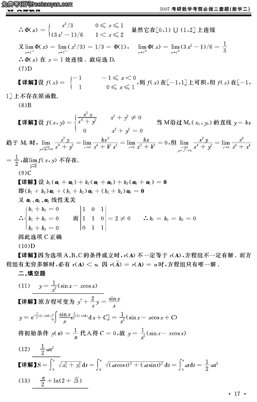 2007考研数学考前必做三套题(数学二试卷二)(7)