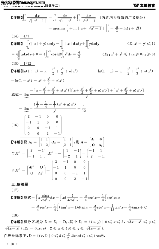 2007考研数学考前必做三套题(数学二试卷二)(8)
