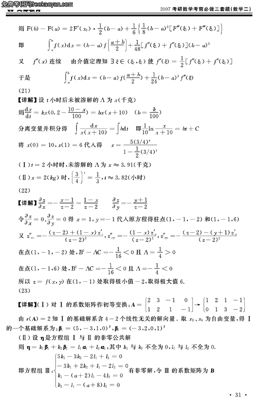 2007考研数学考前必做三套题(数学二试卷三)(10)