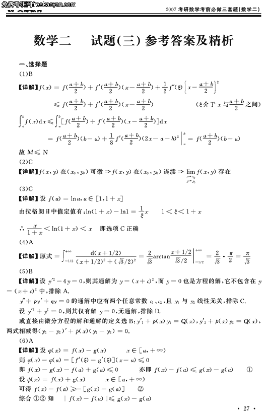 2007考研数学考前必做三套题(数学二试卷三)(6)