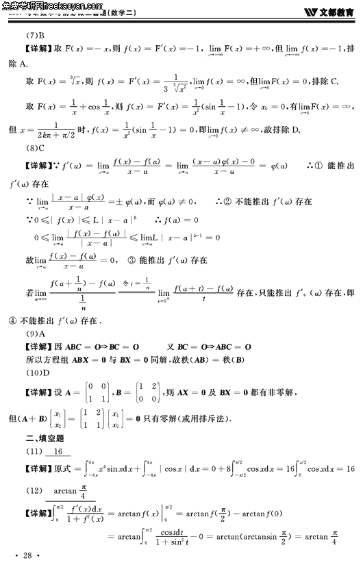 2007考研数学考前必做三套题(数学二试卷三)(7)