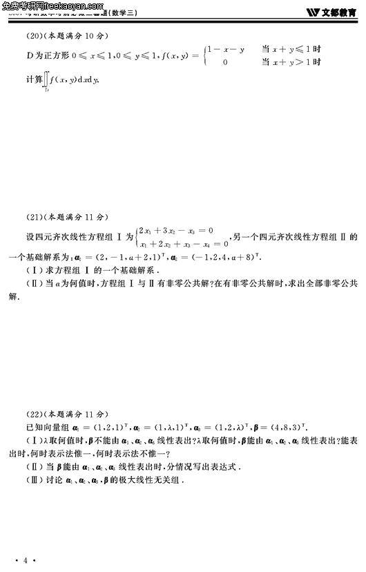 2007考研数学考前必做三套题(数学三试卷一)(4)