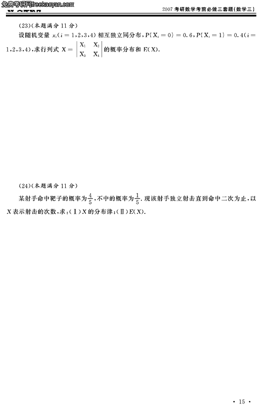 2007考研数学考前必做三套题(数学三试卷二)(5)