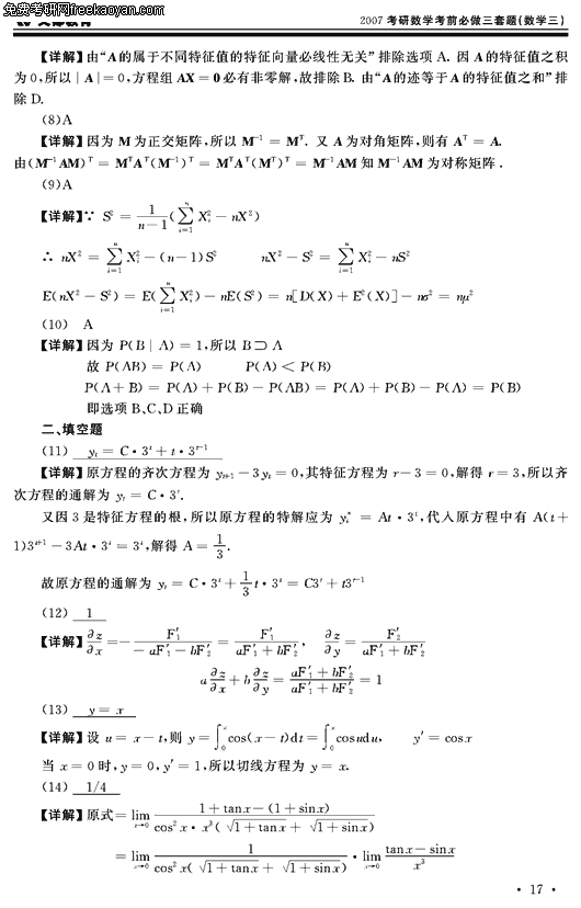 2007考研数学考前必做三套题(数学三试卷二)(7)
