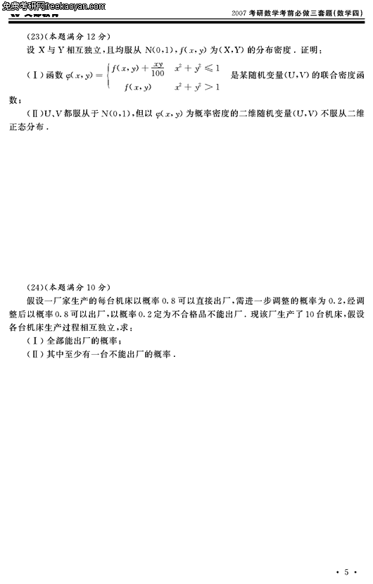 2007考研数学考前必做三套题(数学四试卷一)(5)