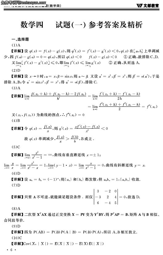 2007考研数学考前必做三套题(数学四试卷一)(6)