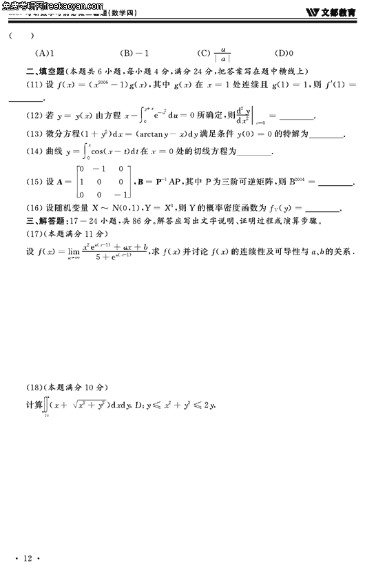 2007考研数学考前必做三套题(数学四试卷二)(2)