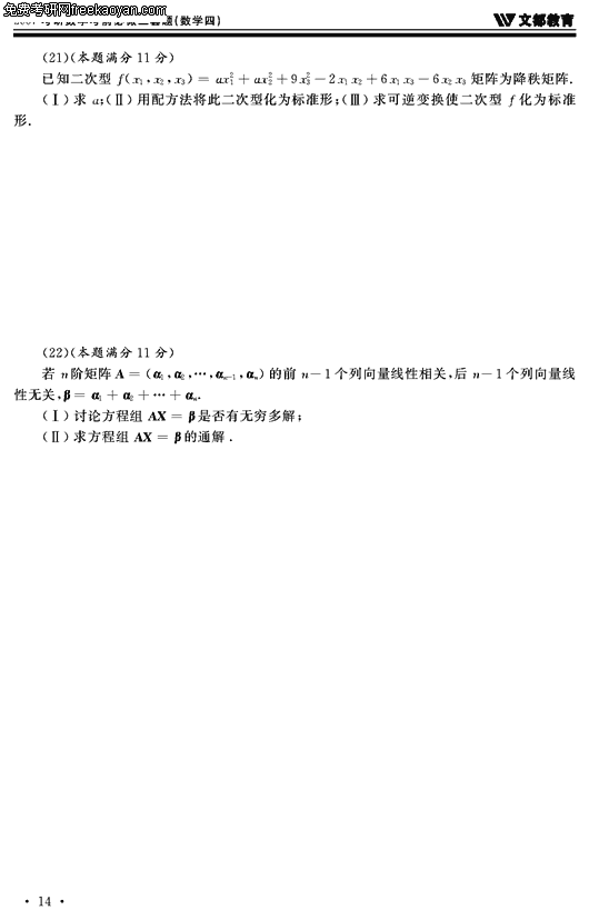 2007考研数学考前必做三套题(数学四试卷二)(4)
