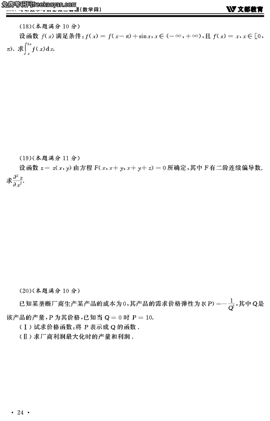 2007考研数学考前必做三套题(数学四试卷三)(3)