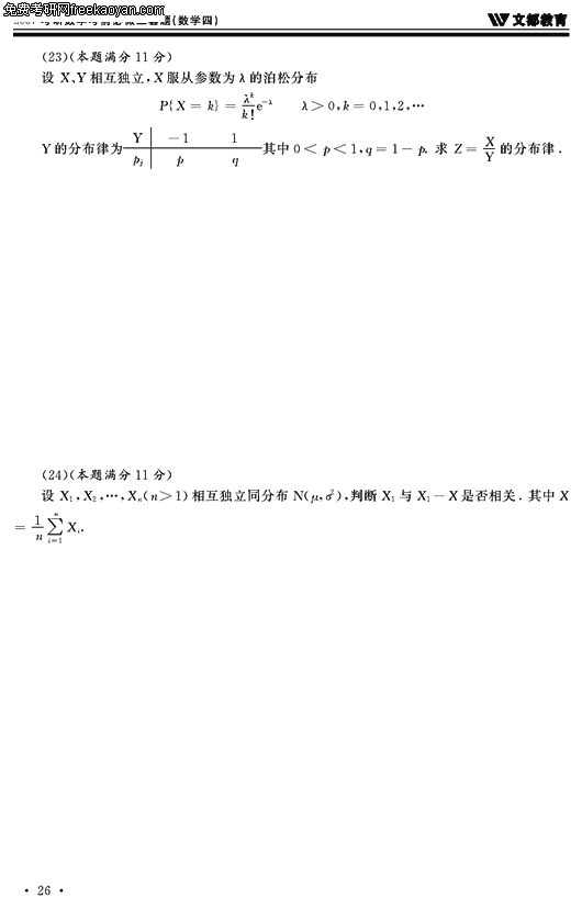 2007考研数学考前必做三套题(数学四试卷三)(5)