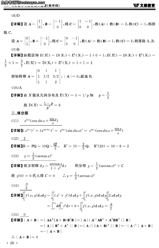 2007考研数学考前必做三套题(数学四试卷三)(7)