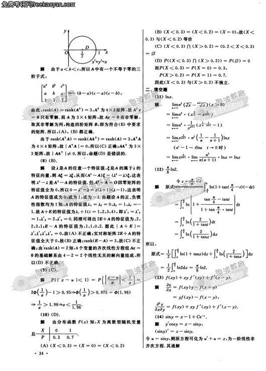2007年硕士研究生考试数学最后冲刺试卷(四)