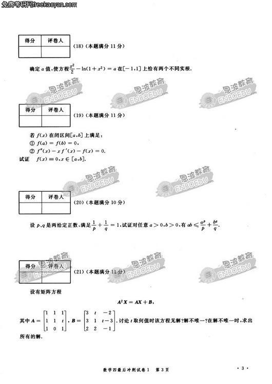 2007年硕士研究生考试数学最后冲刺试卷(四)(7)
