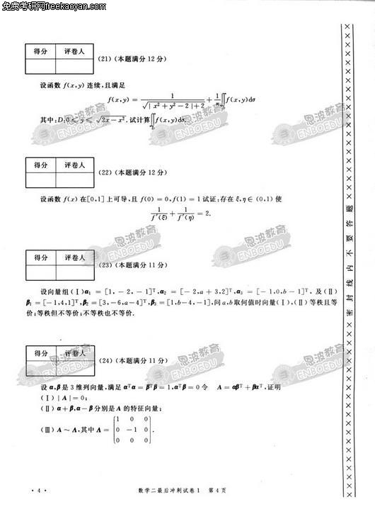 2007年硕士研究生考试数学最后冲刺试卷(二)(3)