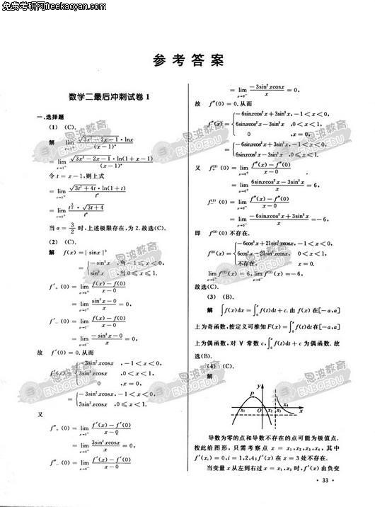 2007年硕士研究生考试数学最后冲刺试卷(二)(4)