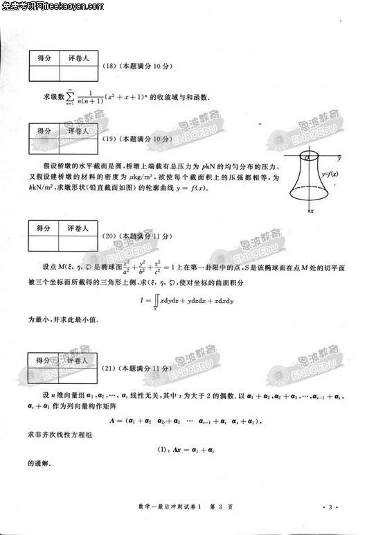 2007年硕士研究生考试数学最后冲刺试卷(一)(2)