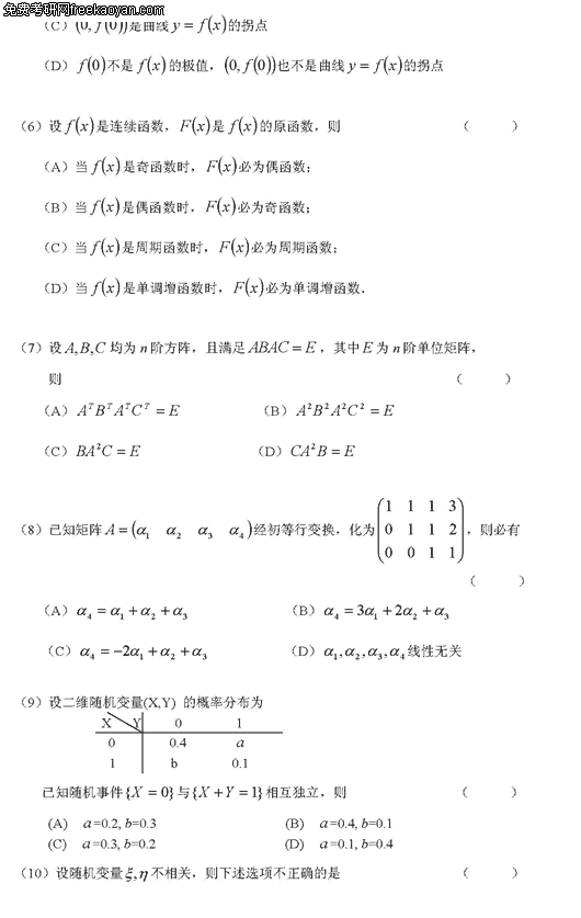 2007研究生入学考试数学考前模拟试卷及答案(2)