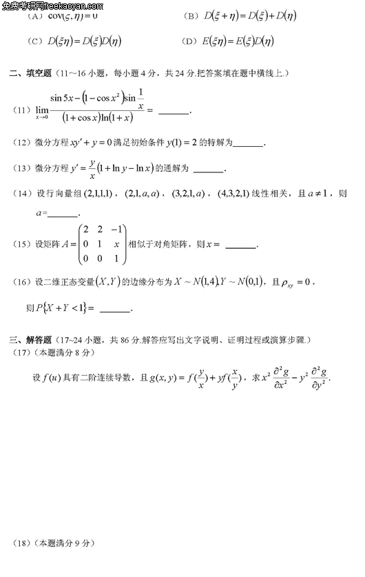 2007研究生入学考试数学考前模拟试卷及答案(3)