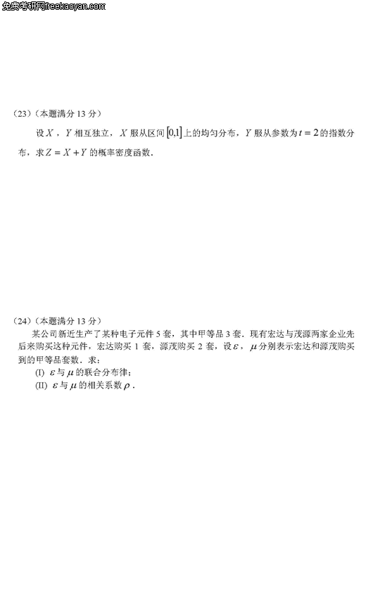 2007研究生入学考试数学考前模拟试卷及答案(6)