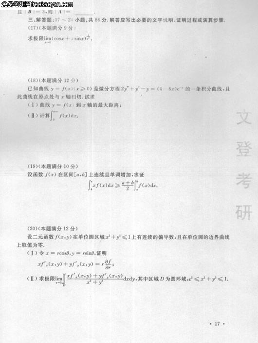 2007年硕士研究生入学考试阶段测试题数学二(3)