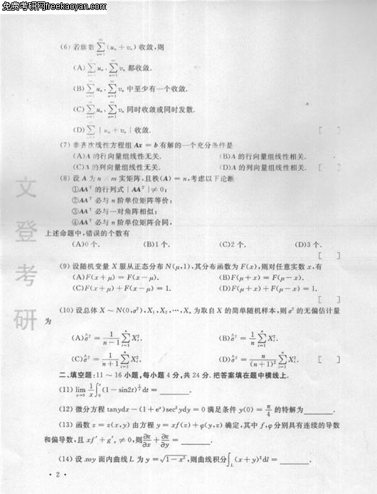 2007年硕士研究生入学考试阶段测试题数学一(2)