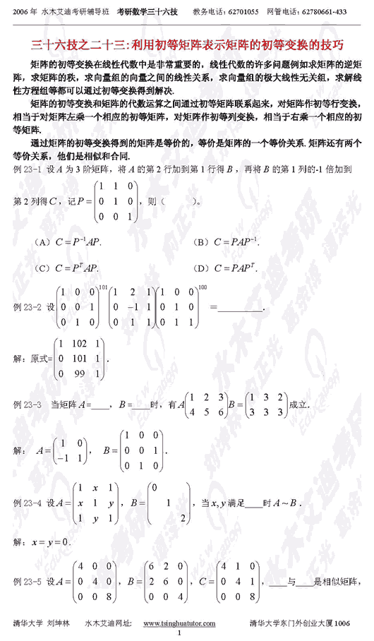考研数学:利用初等矩阵表示矩阵变换的技巧