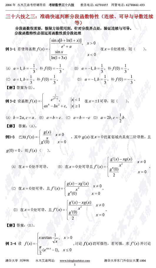 考研数学:准确快速判断分段函数特性