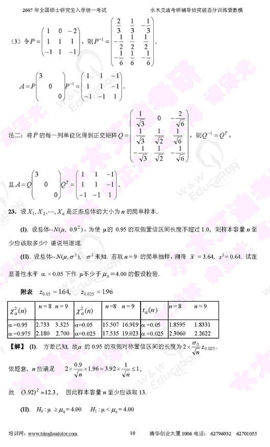 2007年硕士研究生入学考试数学(一)模拟试卷(10)