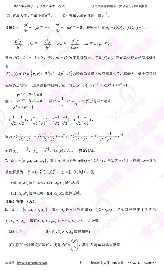 2007年硕士研究生入学考试数学(一)模拟试卷(3)