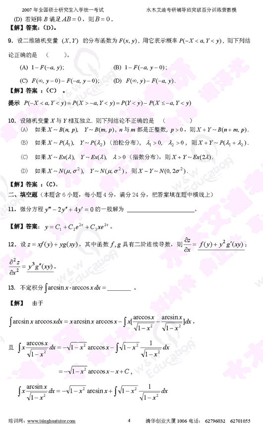 2007年硕士研究生入学考试数学(一)模拟试卷(4)