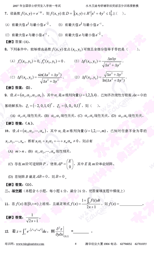 2007年硕士研究生入学考试数学(二)模拟试卷(4)